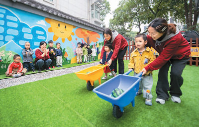 作为南京目前为数不多的能提供与产假无缝对接的社会机构,这个托育中心能够接收6个月至3岁的婴幼儿,目前累计接收婴幼儿400多名。受惠于去年2月印发的《江苏省关于优化生育政策促进人口长期均衡发展实施方案》等政策利好,去年江苏新增普惠托育机构95家。